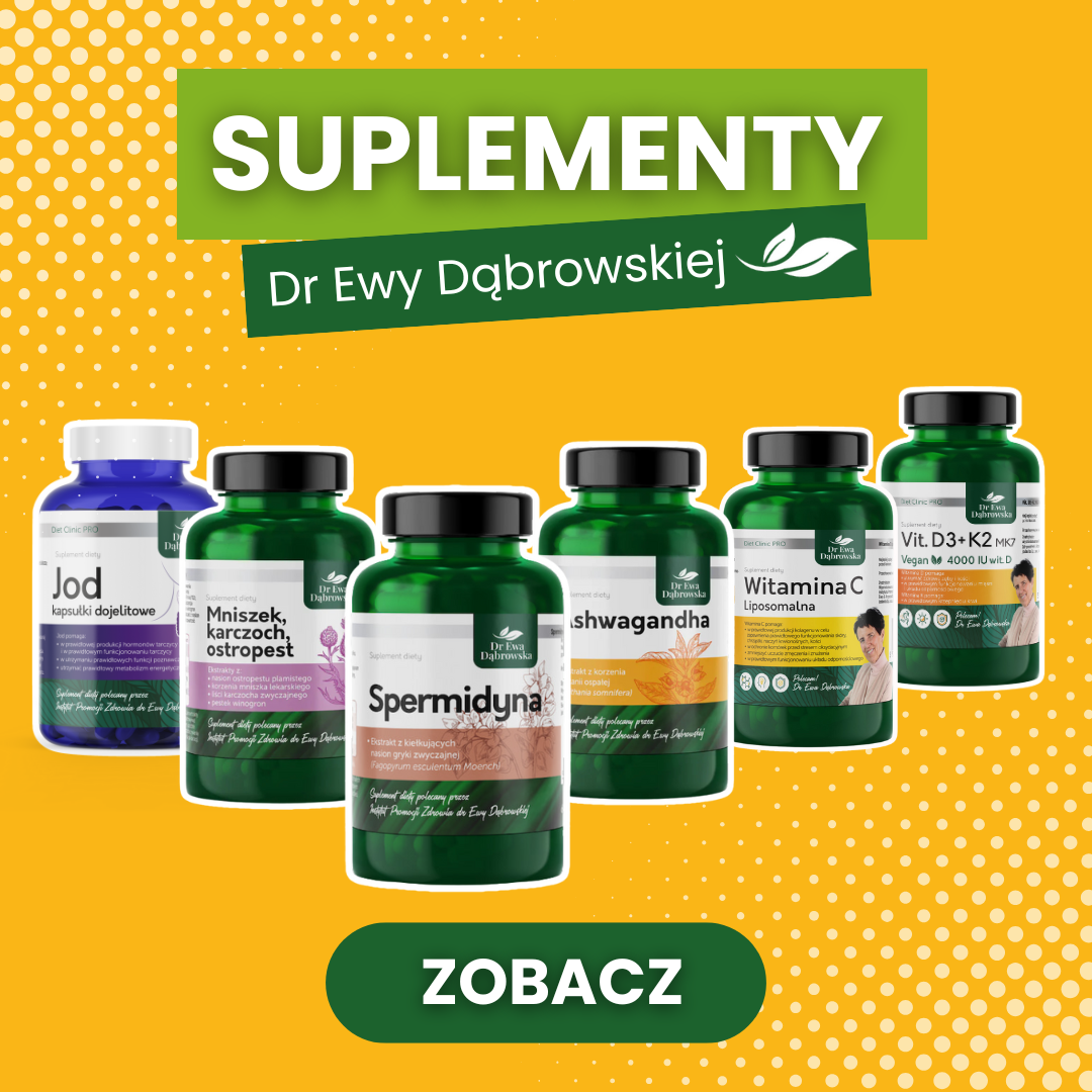 suplementów diety Dr Ewy Dąbrowskiej. To pierwsza w historii seria preparatów rekomendowana przez Dr Dąbrowską – autorkę leczniczego postu warzywno-owocowego. Są to suplementy diety dedykowane w szczególności osobom na poście warzywno-owocowym Dr Ewy Dąbrowskiej. W serii znajdziesz najbardziej popularne suplementy diety, takie jak magnez na zmęczenie, witamina D na odporność, cynk na włosy skórę i paznokcie, czy jod na tarczycę. Na niedobór witaminy D3 cierpi ok. 90% Polaków – osoby na diecie wegańskiej są w szczególnej grupie ryzyka, ponieważ eliminują z diety produkty najbardziej bogate w witaminę D. W ofercie znajdziesz witaminę D3 + K2MK7 w 100% z wegańskich składników, pozyskiwaną z alg morskich, aż 4 tysiące jednostek w dziennej dawce!